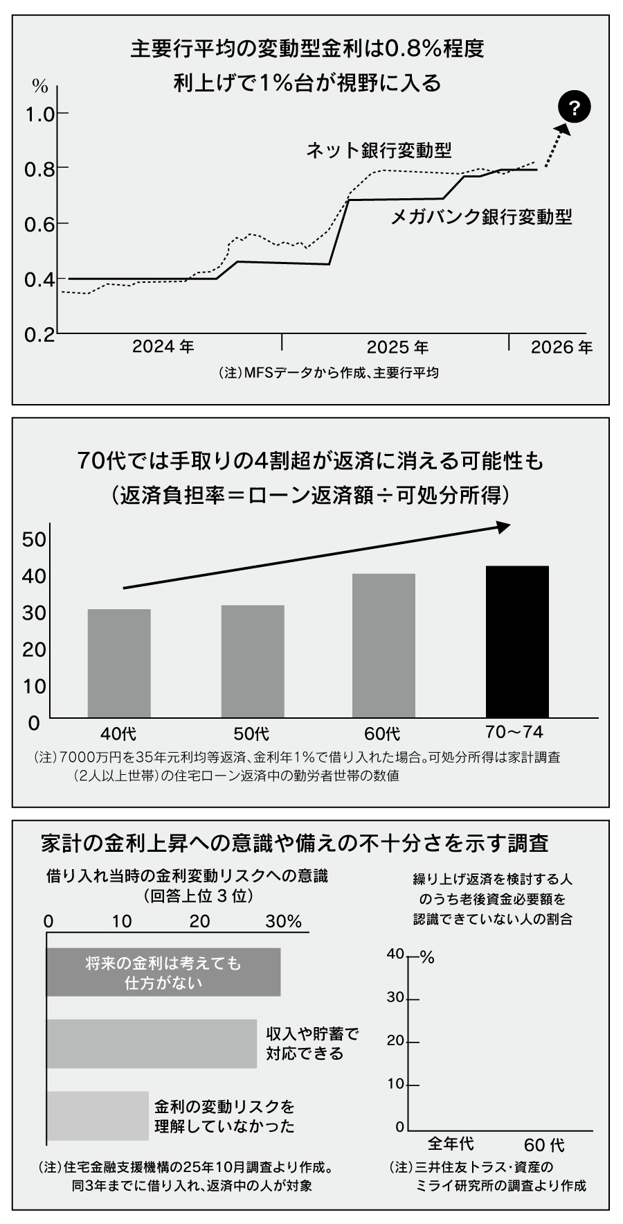 最近は20代で「50年ローン」を選ぶ場合も多くなり70代まで返済が続くケースも増えています。現在の金利1%越えは、ローン返済のリスクを見直す契機になっています。